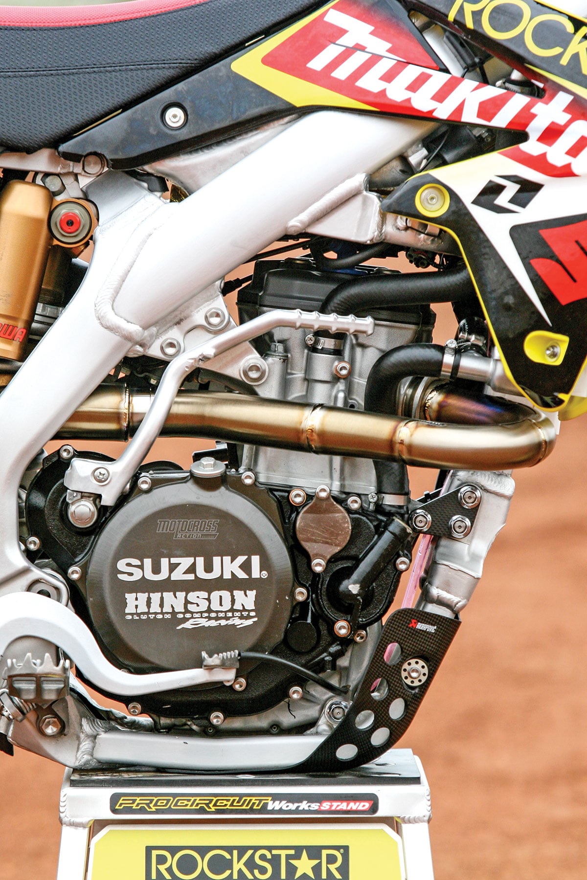 A factory bike is supposed to have all the expensive bells and whistles that aren’t for sale. Reed’s RM-Z450 didn’t disappoint. Every square inch of the Suzuki was studied, massaged and made better. No stone was left unturned, evidenced by the extensive list of works parts.