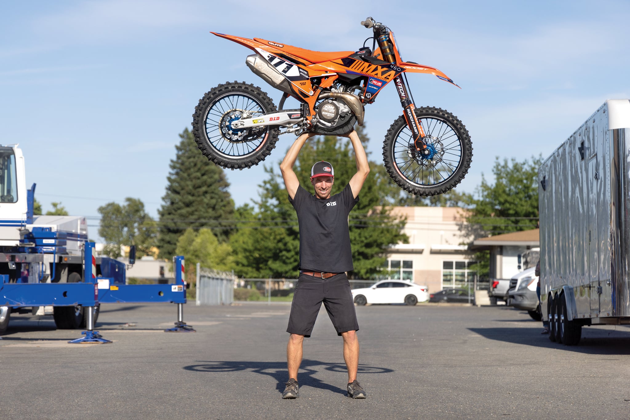 Is the KTM 450SXF that light? Or, is Josh that strong? This was his special Hangtown 450 National bike, but you still need a crane to get it above your head.