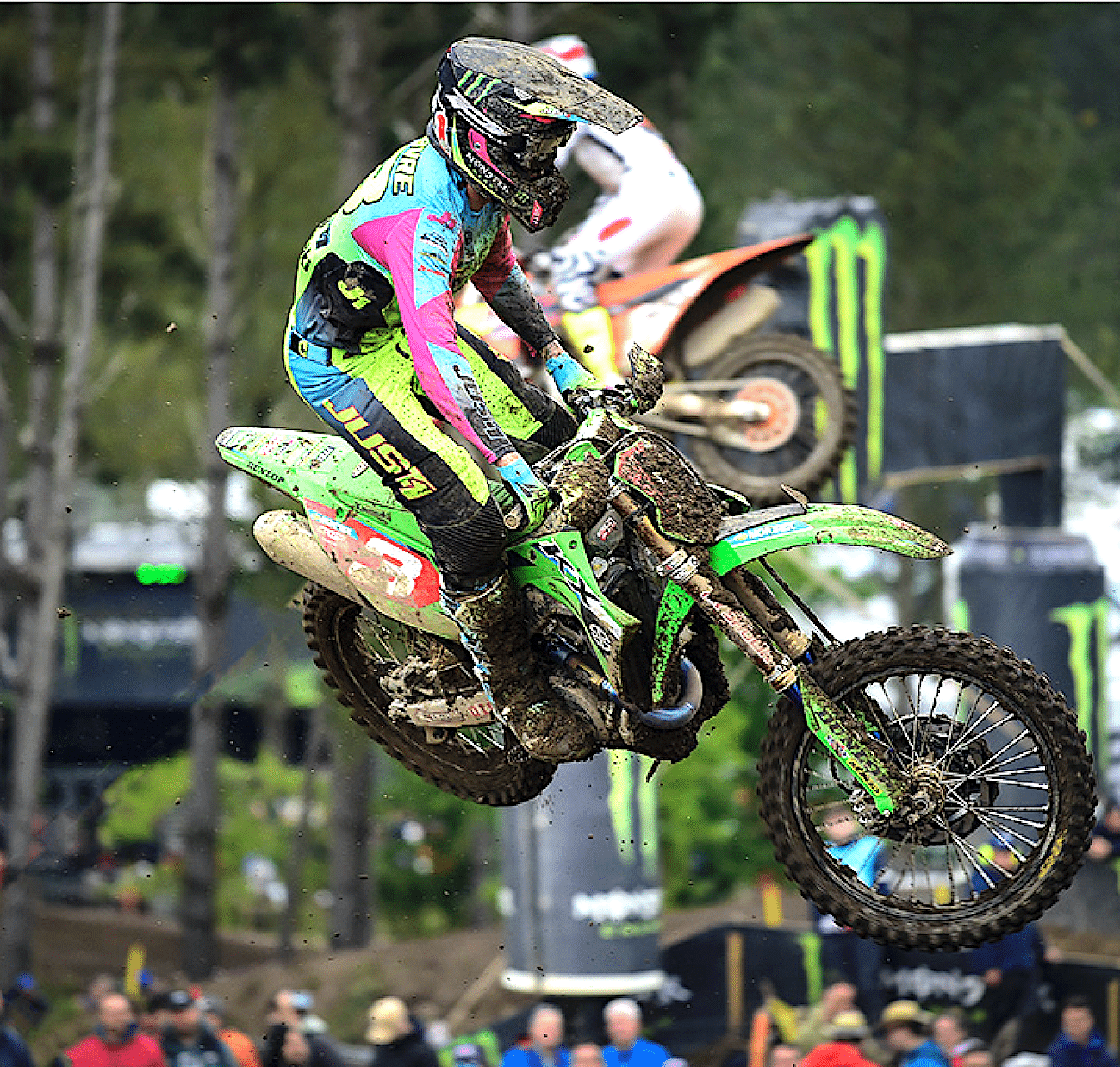 Kawasaki factory rider Romain Febvre fought back against the rising star of Lucas Coenen, who won the last two 450 GPs, when Febvre took the overall victory at the Lugo track in Spain with a 1-2, although he couldn’t stop Coenen from winning the second moto to go 4-1. The 450 FIM World Championship points after 8 of 20 rounds are Romain Febvre 386 points, Lucas Coenen 337, Tim Gajser 305 (who sat out the second Spanish Grand Prix of the 2025 season. Gajser is recovering from shoulder surgery), Glenn Coldenhoff is fourth with 277 points and Ruben Fernandez has 261 points.